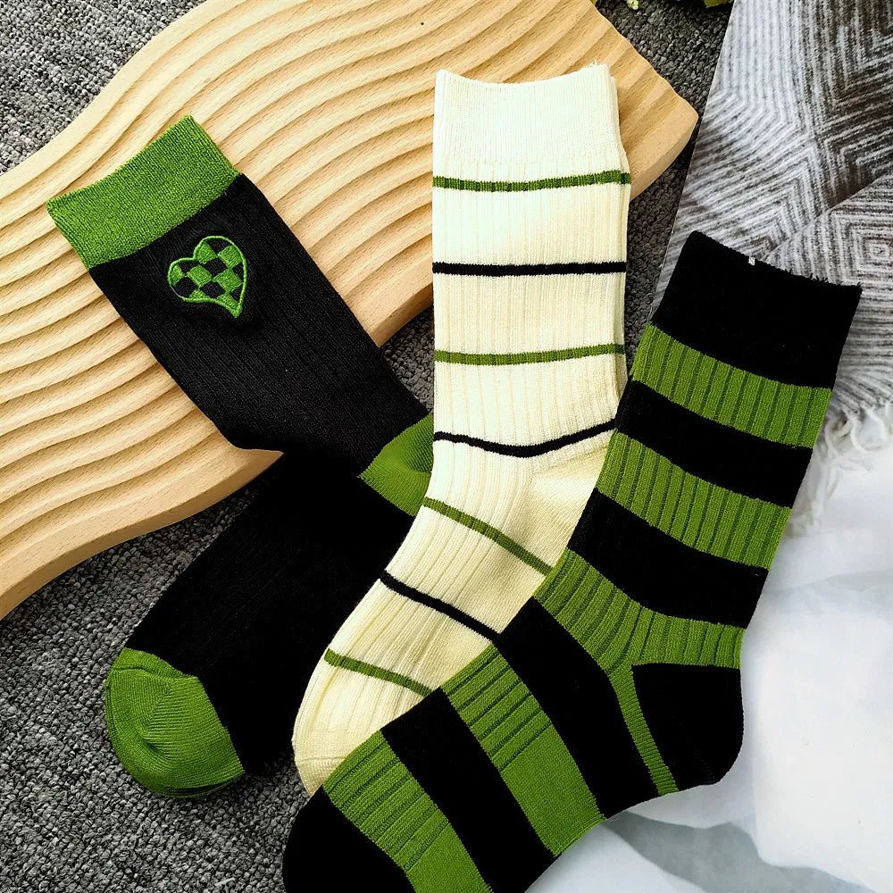 NAME2023 Autumn Winter Soft Double Knitted Fashion Cool Wholesale 100 Cotton Custom Embroidery Leisure Younger Girl Stripes Grip Crew Happy Socks