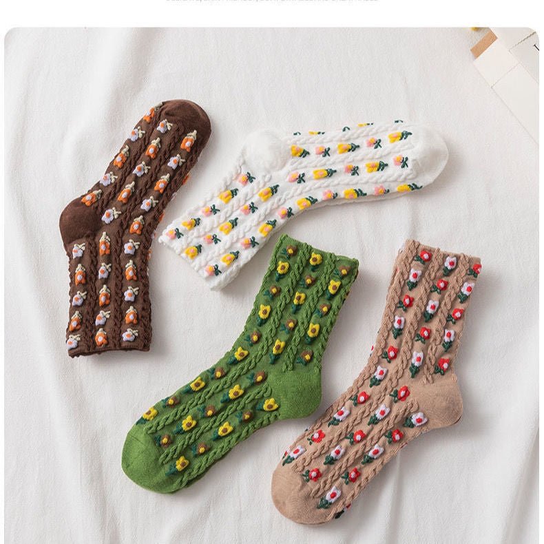 NAME Wholesale Beautiful Girl Fashion Style 3D Flowers High Quality Breathable Soft School Girl Lady Women Casual Custom Socks